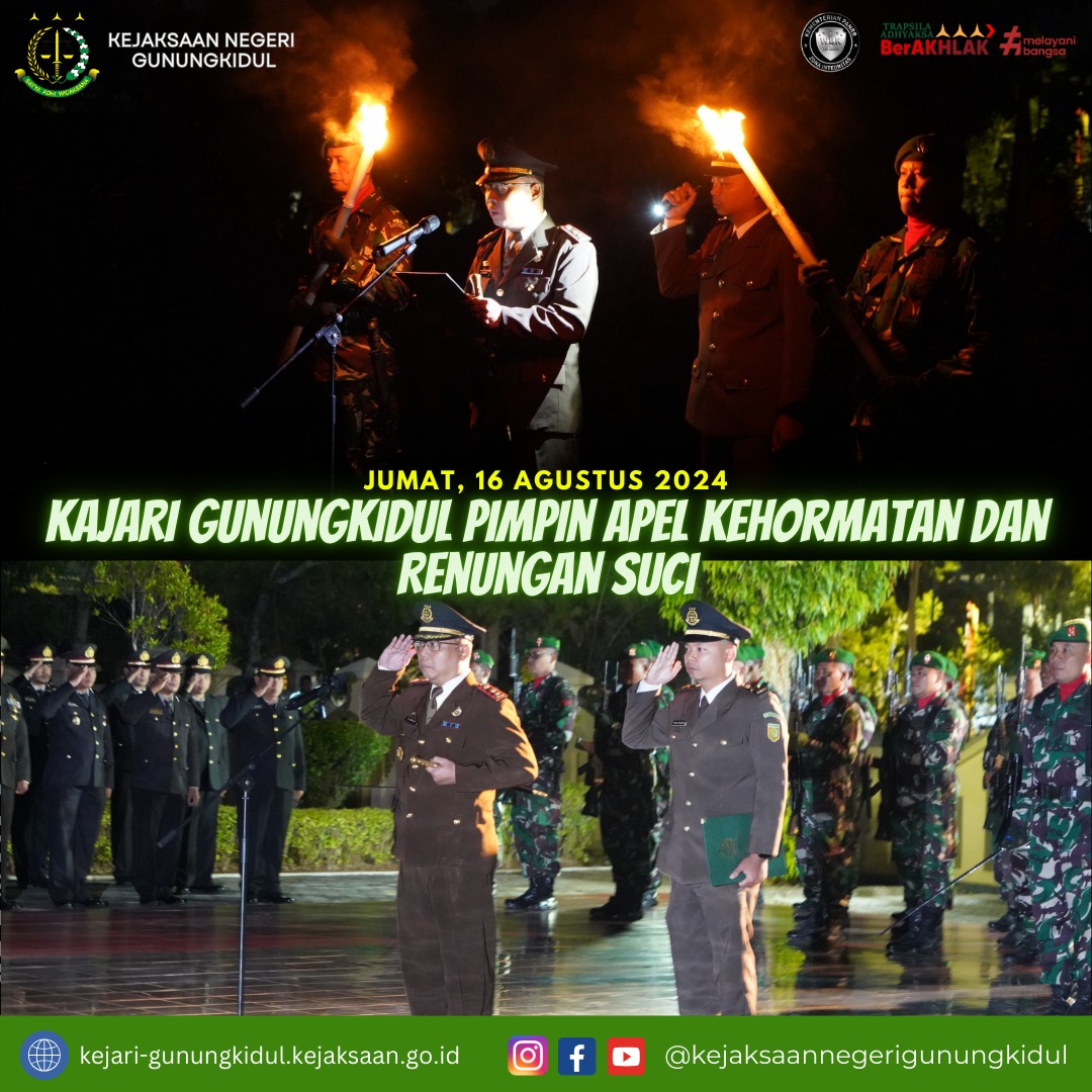 Kepala Kejaksaan Negeri Gunungkidul Slamet Jaka Mulyana, S.H.,M.H. Pimpin Apel Kehormatan Dan Renungan Suci, bertempat di Taman Makam Pahlawan “Bhakti Pratiwi” Wonosari. Jum’at(16/8/2024)