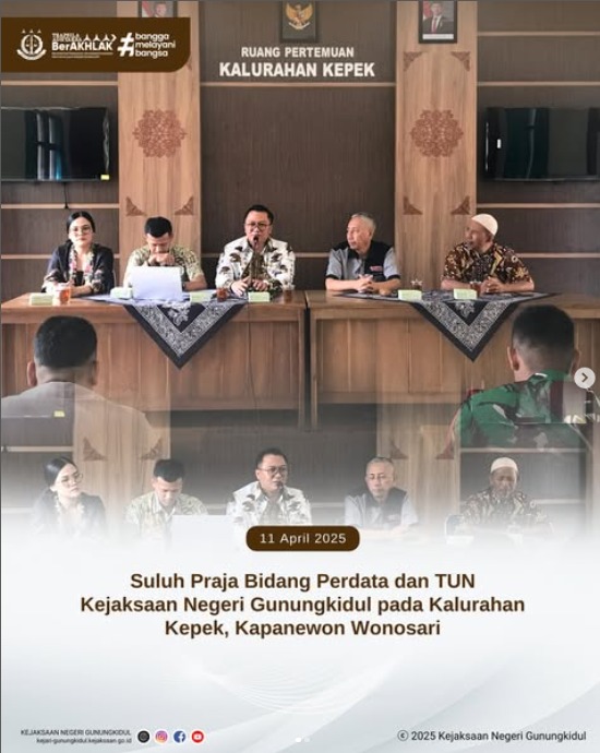 Kepala Seksi Perdata dan Tata Usaha Negara Kejaksaan Negeri Gunungkidul, Tomy Novendri, S.H., M.Kn. didampingi oleh Kasubsi melaksanakan kegiatan Suluh Praja bertempat di Kalurahan Kepek, Kapanewon Wonosari pada hari Jum’at (11/04/2025)