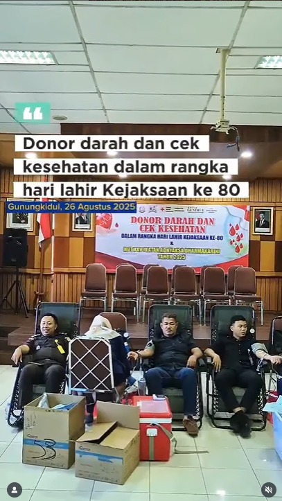 Dalam rangka memperingati Hari Lahir Kejaksaan Republik Indonesia ke-80 Tahun 2025, Kejaksaan Negeri Gunungkidul menyelenggarakan kegiatan Donor Darah dan Cek Kesehatan sebagai wujud kepedulian terhadap sesama dan komitmen dalam menjaga kesehatan pegawai.
