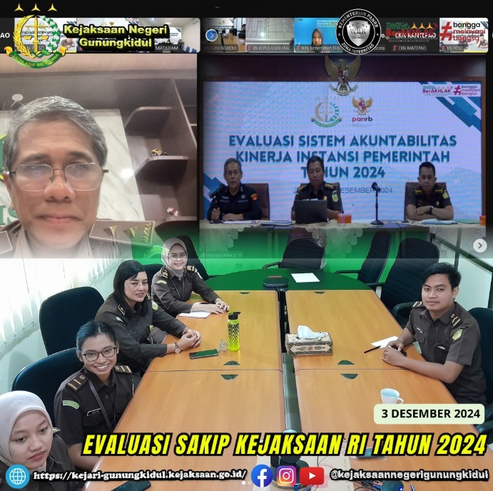 Kejaksaan Negeri Gunungkidul mengikuti Evaluasi SAKIP Kejaksaan RI TAHUN 2024, di Aula Kejari Gunungkidul. Selasa(3/12/2024)