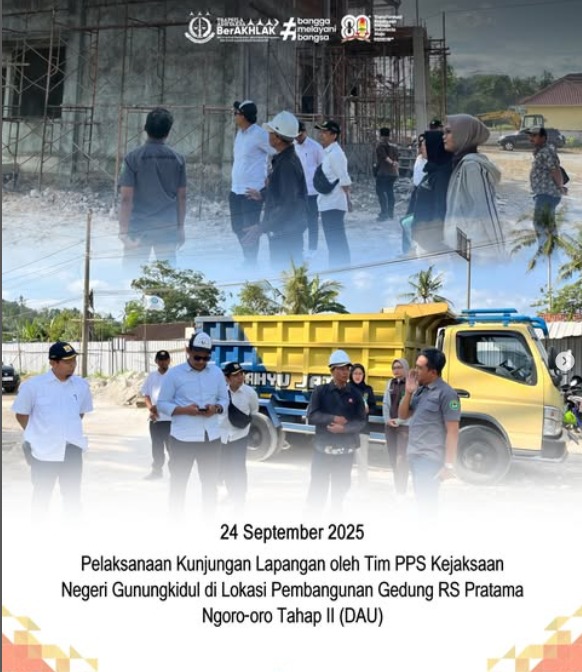 Dinas PUPR Kabupaten Gunungkidul bersama Tim Pengamanan Pembangunan Strategis (PPS) Kejaksaan Negeri Gunungkidul melaksanakan kunjungan lapangan ke lokasi Pembangunan Gedung RS Pratama Ngoro-oro Tahap II (DAU).