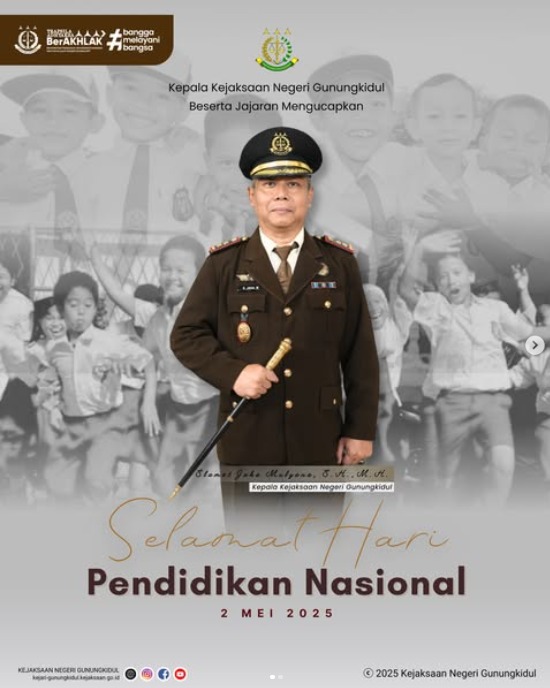 Kepala Kejaksaan Negeri Gunungkidul Beserta Jajaran Mengucapkan, Selamat Hari Pendidikan Nasional.