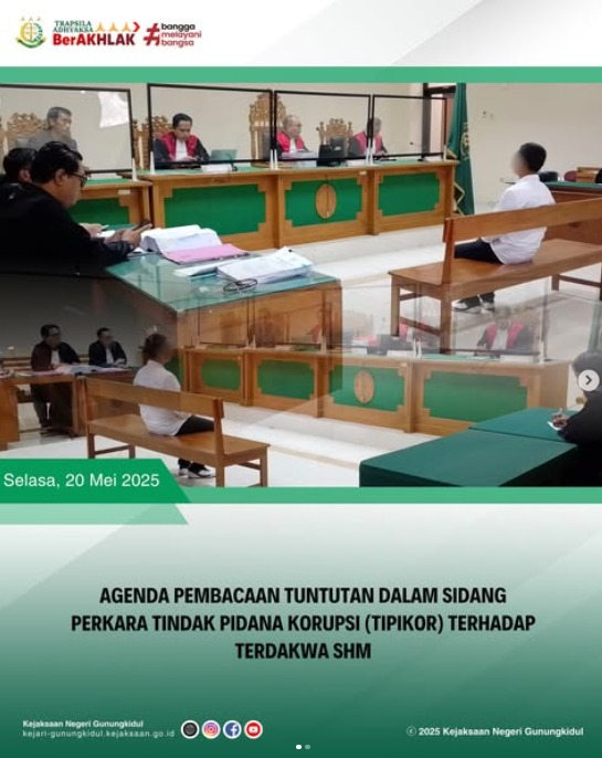 Pada hari Selasa, tanggal 20 April 2025 telah dilaksanakan Agenda Sidang Pembacaan Tuntutan Atas Perkara Tindak Pidana Korupsi (TIPIKOR) terhadap Terdakwa SHM. Agenda sidang bertempat di Pengadilan Tindak Pidana Korupsi dan Hubungan Industrial Yogyakarta.