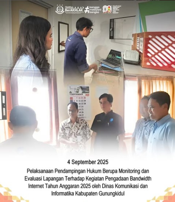 Pada hari Kamis, 04 September 2025 bertempat di Kantor Kapanewon Karangmojo, Kantor Kapanewon Ngawen, dan Kantor Kapanewon Semin Kabupaten Gunungkidul, Ni Made Sukreni Gadis Bali, S.H., M.H. selaku Jaksa Pengacara Negara telah melaksanakan Pendampingan Hukum berupa Monitoring di lapangan terhadap Kegiatan Pengadaan Bandwidth Internet Tahun Anggaran 2025 oleh Dinas Komunikasi dan Informatika Kabupaten Gunungkidul, adapun pendampingan ini dilaksanakan dengan tujuan agar memitigasi atau mengurangi risiko hukum serta memastikan pelaksanaan kegiatan sesuai dengan peraturan perundang-undangan yang berlaku guna tepat mutu, sasaran, dan bermanfaat.