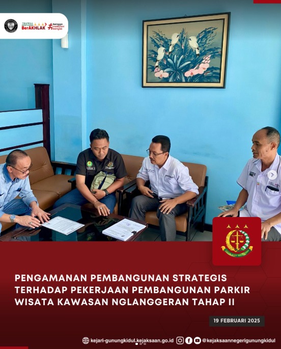 Kasi Intelijen Kejaksaan Negeri Gunungkidul didampingi staf melaksanakan kegiatan Pengamanan Pembangunan Strategis terhadap Pekerjaan Pembangunan Parkir Wisata Kawasan Nglanggeran Tahap II yang dilaksanakan oleh Dinas Pariwisata Kabupaten Gunungkidul.
