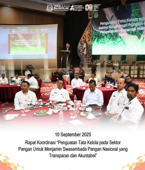 Rapat Koordinasi Penguatan Tata Kelola pada Sektor Pangan diselenggarakan sebagai wujud komitmen bersama dalam memperkuat ketahanan pangan nasional.