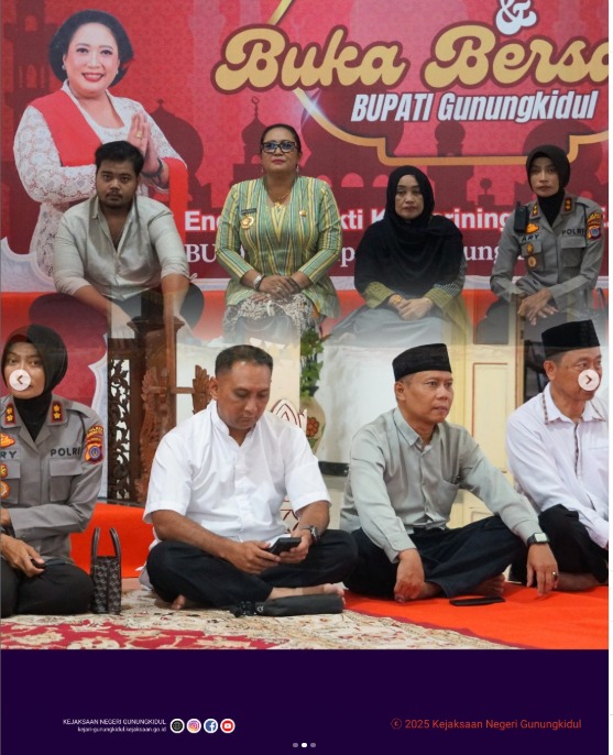 Hari Jum’at, 21 Maret 2025 Kajari Gunungkidul, Slamet Jaka Mulyana, S.H., M.H. bersama dengan jajaran Forkopimda Kabupaten Gunungkidul menghadiri undangan acara Kenduri Pindahan Rumah Singgah dan Buka Bersama Bupati Gunungkidul bertempat di Bangsal Sewokoprojo Wonosari.