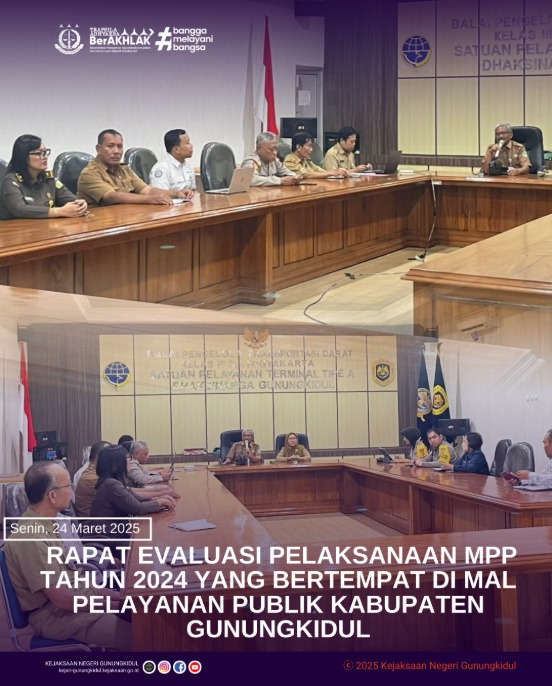 Hadir mewakili Kepala Kejaksaan Negeri Gunungkidul, Kasubagbin, Veronica Anna Fransisca Mayasari D ,S.H., M.H. dalam pelaksanaan kegiatan Rapat Evaluasi Pelaksanaan MPP Tahun 2024 yang diselenggarakan oleh Dinas Penanaman Modal