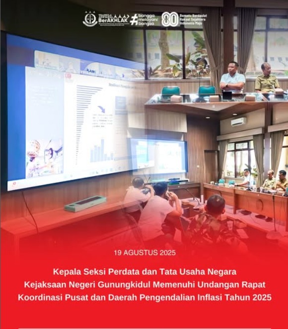 Pada hari Selasa, tanggal 19 Agustus 2025 bertempat di Sekretariat Daerah Kabupaten Gunungkidul, Tomy Novendri, S.H., M.Kn. selaku Kepala Seksi Perdata dan Tata Usaha Negara telah memenuhi Undangan Rapat Koordinasi Pusat dan Daerah Pengendalian Inflasi Tahun 2025.