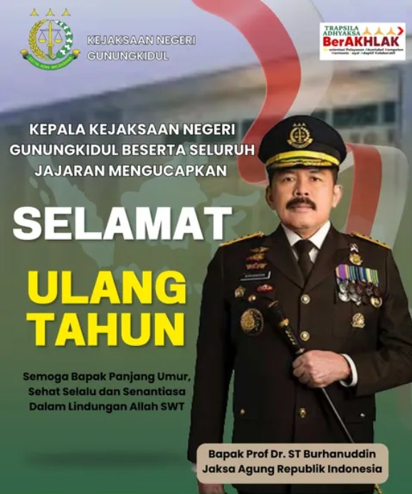“Selamat Ulang Tahun kepada Bapak Jaksa Agung Republik Indonesia, Prof. Dr. H. Sanitiar Burhanuddin, S.H., M.M.”