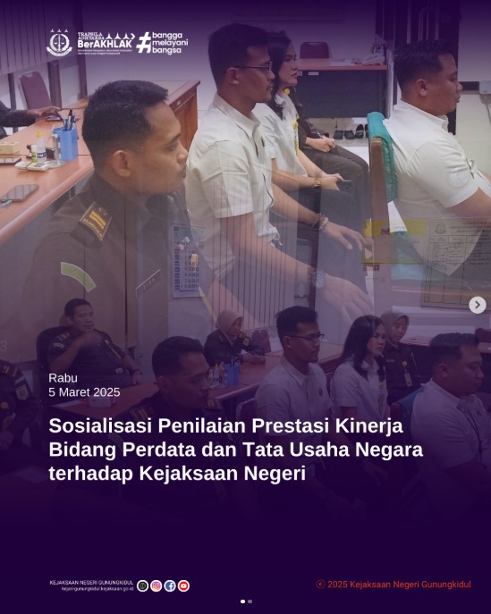 Kepala Seksi Perdata dan TUN Kejaksaan Negeri Gunungkidul, Tomy Novendri, S.H., M.Kn. didampingi oleh Kasubsi dan staff melaksanakan zoom meeting Sosialisasi Penilaian Prestasi Kinerja Bidang Perdata dan Tata Usaha Negara terhadap Kejaksaan Negeri pada hari Rabu (05/03/2025) yang diselenggarakan oleh Kejaksaan Tinggi D.I. Yogyakarta.
