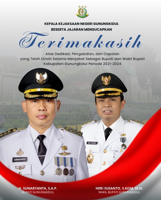 Terima kasih kepada Bupati H. Sunaryanta, S.A.P. dan Wakil Bupati Heri Susanto, S.Kom, M.Si.