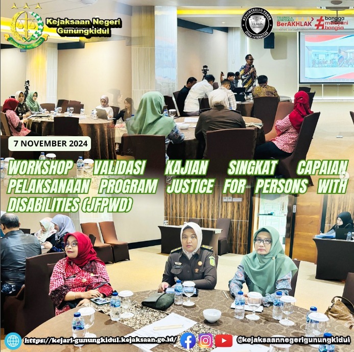 Kasi Pidum Kejari Gunungkidul menghadiri Workshop Validasi Kajian Singkat Capaian Pelaksanaan Program Justice for Persons with Disabilities (JFPWD), di The Alana Yogyakarta Hotel & Convention Center