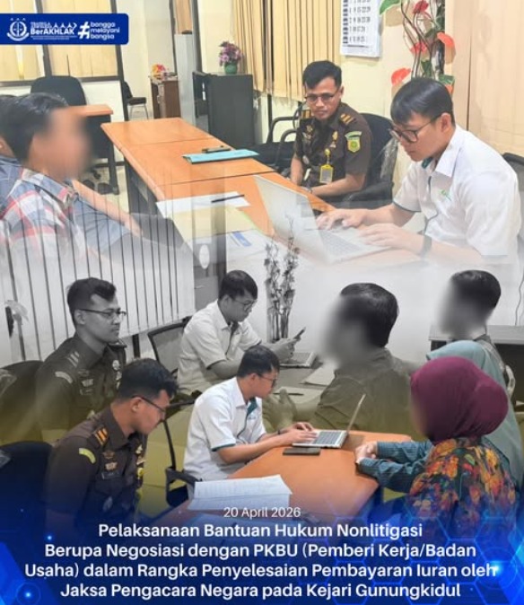 Pada hari Senin, tanggal 5 Mei 2025 Kepala Kejaksaan Negeri Gunungkidul, Slamet Jaka Mulyana, S.H., M.H. didampingi oleh Kasubsi Tindak Pidana Khusus dan Kasubsi Tindak Pidana Umum melaksanakan Zoom Meeting Rapat Koordinasi Bersama Mabes TNI dan Jaksa Agung Muda Pidana Militer tentang dukungan pengamanan Kejaksaan Tinggi dan Kejaksaan Negeri di seluruh wilayah Indonesia. Zoom meeting dilaksanakan di Ruang Rapat Kantor Kejaksaan Negeri Gunungkidul.